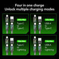 🔌 تصميم 4 في 1 : يتميز بـ 4 منافذ: USB A ، و Lightning ، و Double Type-C ، مما يوفر تنوعًا للأجهزة المختلفة.
